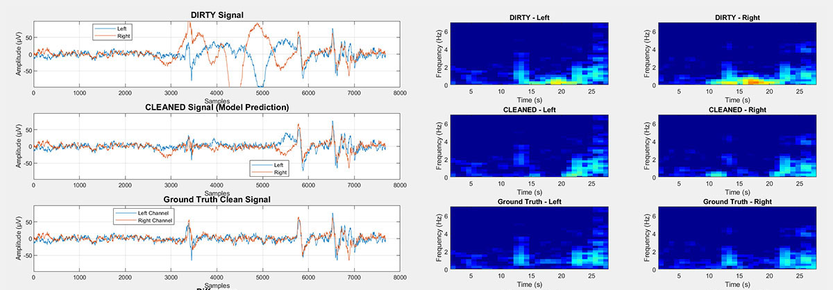 MORE IN DEPTH SPECTRAL VIEWSFigures 1, 2: When an epoch is deemed to contain no artifacts, the signal is left untouched, yielding a null spectral change. ![]() ![]() Figure 3: Large sweat artifact overlapping a K complex. The cleaned signal is spectrally very similar to the ground truth.