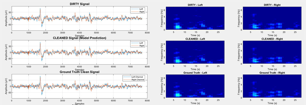 MORE IN DEPTH SPECTRAL VIEWSFigures 1, 2: When an epoch is deemed to contain no artifacts, the signal is left untouched, yielding a null spectral change. ![]() ![]() Figure 3: Large sweat artifact overlapping a K complex. The cleaned signal is spectrally very similar to the ground truth.