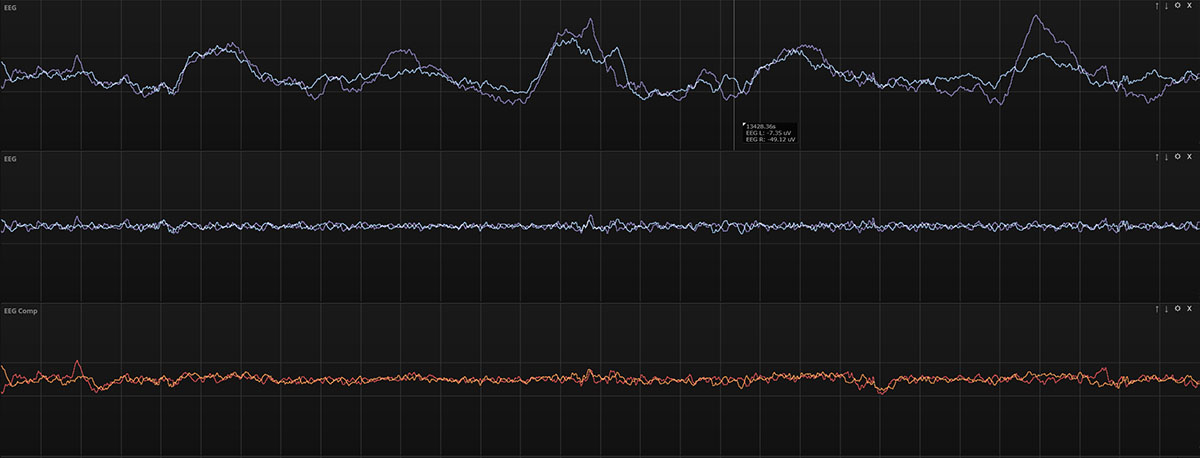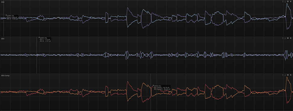 AvailabilitySweat removal is now in early access and will be released in the coming weeks. Contact us if you are interested in testing this feature on one of your data files. DownloadsBelow you can download a ZMax data file that has the original signals (EEG L, EEG R.edf) and the sweat-removed signals (EEG Comp L, EEG Comp R.edf). when you open this file with the latest version of HDScorer, the two EEG tracks will be displayed together for easy browsing. Download original EDF and sweat-removed EDF (63 MB) Home |